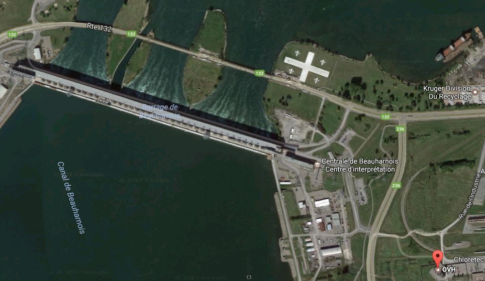 The data center uses clean renewable energy directly from the 1 km wide, run-of-the-river, Beauharnois hydro-electric power station located just 300 meters away from the building.